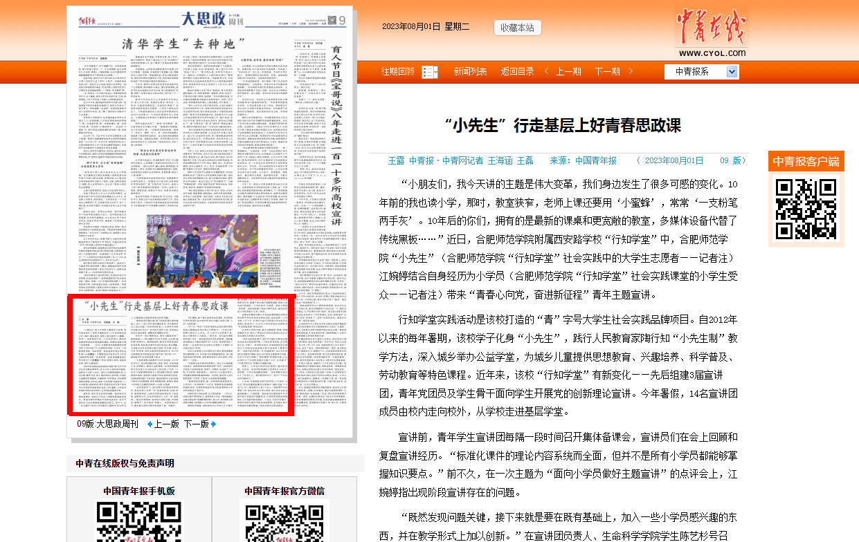 此次行知学堂是学院和首次联合桥头集镇中学开展行知学堂,小先生们与38名小学员在为期28天的实践活动中朝夕相处,共同收获了欢乐和成长,并赢得当地家长和学员们的一致好评,中国青年报对此进行了报道。(国产高清午夜成人lu22:周玉)