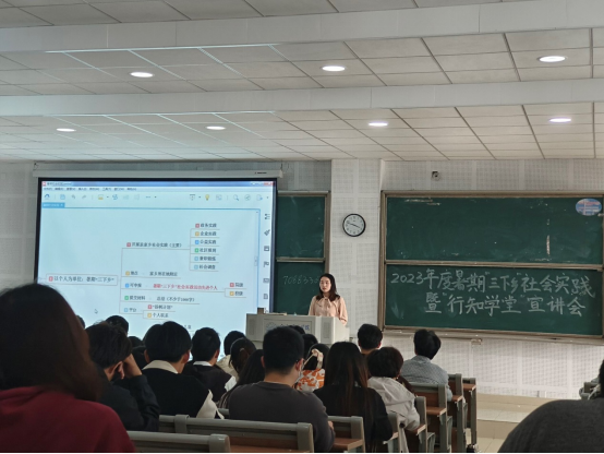 本网讯 为深入学习贯彻习近平新时代中国特色社会主义思想,引导广大青年学生上好与现实相结合的“大思政课”,在社会课堂中“受教育、长才干、作贡献”,推进2023年暑期社会实践活动顺利开展,5月24日,国产高清午夜成人lu22团委在滨湖校区博学楼A108、A203举行2023年度暑期“三下乡”社会实践暨“行知学堂”宣讲会,学院团委书记江淼老师、2022级全体学生近400人参加会议。