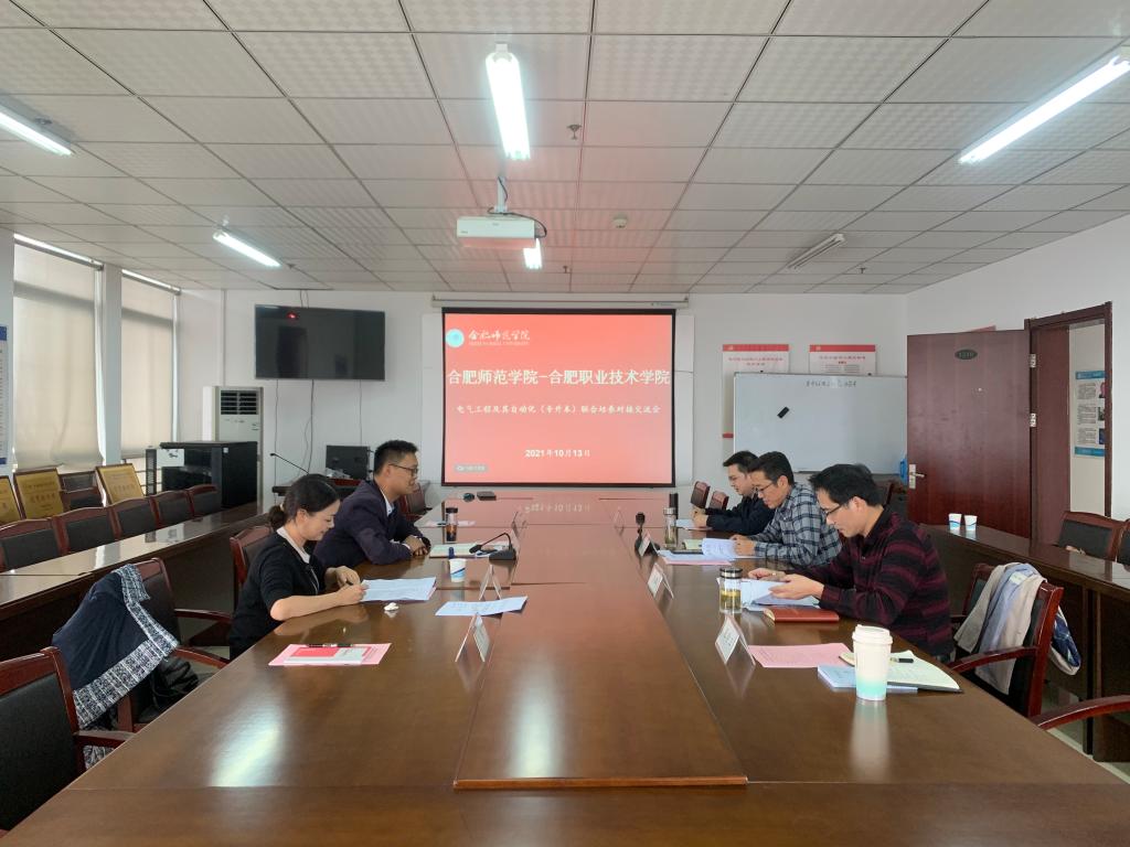 本网讯 为切实做好合肥师范学院-合肥职业技术学院电气工程及其自动化(专升本) 联合培养工作,10月13日上午,合肥职业技术学院机电工程学院党总支书记王克勇、机电工程学院专业负责人高敏等一行赴电子信息与电气工程学院进行对接交流。电子信息与电气工程学院院长张忠祥、副院长范程华、电气工程及其自动化专业负责人申远教授参加对接交流会。
