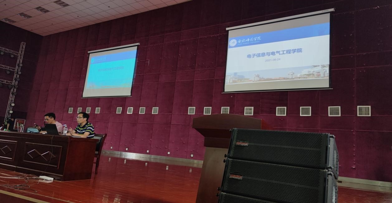 宣讲分为三个部分,首先范程华介绍了合肥师范学院的办学历史、定位,招生层次;其次着重介绍了电子信息与电气学院的建院发展、学科专业特色、师资、实验实践平台及招生就业、人才培养成果等;最后介绍了电子信息工程、电气工程及其自动化、通信工程、微电子科学与工程等专业近几年的招生录取分数、排名。