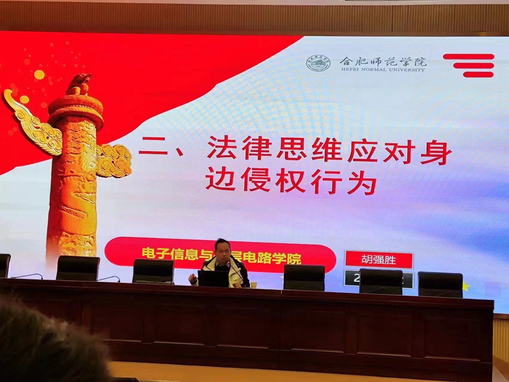 本网讯 为深入学习贯彻习近平总书记关于宪法学习宣传教育的系列重要指示精神,弘扬法治精神,12月7日晚,在校党政办、滨湖办支持下,国产高清午夜成人lu22在滨湖校区学术报告厅为全体大一新生开展“与法同行—做学法守法护法新时代青年”法治教育专题讲座,讲座由滨湖校区综合管理办公室、23级通信工程专业辅导员胡强胜老师主讲。