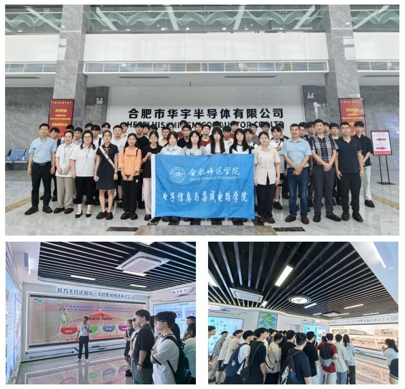 师生们首先来到合肥华宇半导体公司,人力资源主管唐经理热情接待了来访的师生,并详细介绍了公司的成长历程和主营业务。华宇半导体专注于大规模集成电路晶圆测试、FT成品测试及编带,其产品广泛应用于智慧城市、智能驾驶等领域。在参观过程中,销售主管通过智慧大屏展示了公司的核心技术,而生产车间主管则深入讲解了封装工艺和设备工作原理,学生们积极提问,与公司人员进行了深入的交流。