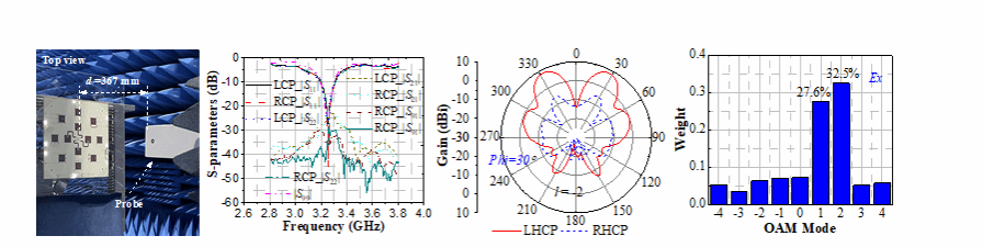 另外,吴杰老师作为通讯作者在IEEE Antennas and Wireless Propagation Letters上围绕轨道角动量可重构天线相关工作,以“ Polarization and Mode Reconfigurable Wideband OAM Magneto-Electric Dipole Antenna Array”为题,提出一种宽带OAM极化、模式可重构磁电偶极子天线(论文引用格式:Jun hu; Chenglong Wang; Jie Wu*; Cheng Zhang; Tao Wang; Gaobin Xu and Zhixiang Huang, Polarization and Mode Reconfigurable Wideband OAM Magneto-Electric Dipole Antenna Array, IEEE Antennas and Wireless Propagation Letters, doi: 10.1109/LAWP.2024.3423707.)。