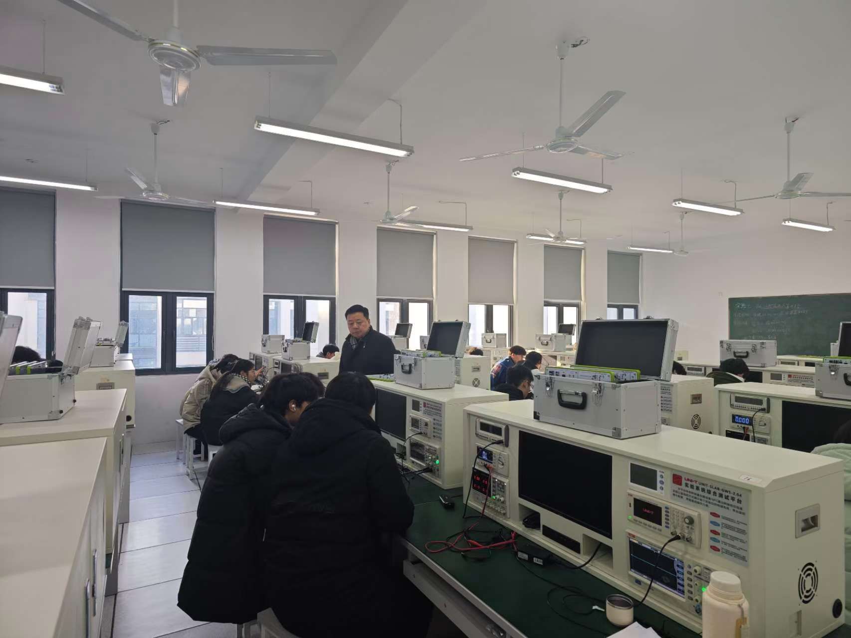 12月16日,学院党政班子带队在滨湖校区进行了期末教学纪律检查。在博学楼A302教室,检查组一行旁听了李琛璐老师的《工程电磁场》课程。在博学楼C302教室,检查组一行对万丽娟老师的《模拟电子技术基础实验》实验课程进行了现场观摩等。通过现场听课,深入了解教师教学情况和学生学习状态,并就有关问题提出改进要求。检查组一行还检查了学院部分实验室,对实验室运行状况进行了评估,并对实验室安全管理、设备维护以及实验教学效果提出指导意见。在当天召开的现场工作会议上,检查组认为,学院各系部的期末教学秩序整体平稳,期末教学稳步进行。会议还就学院期末考试安排及考风考纪宣传提出明确工作要求。