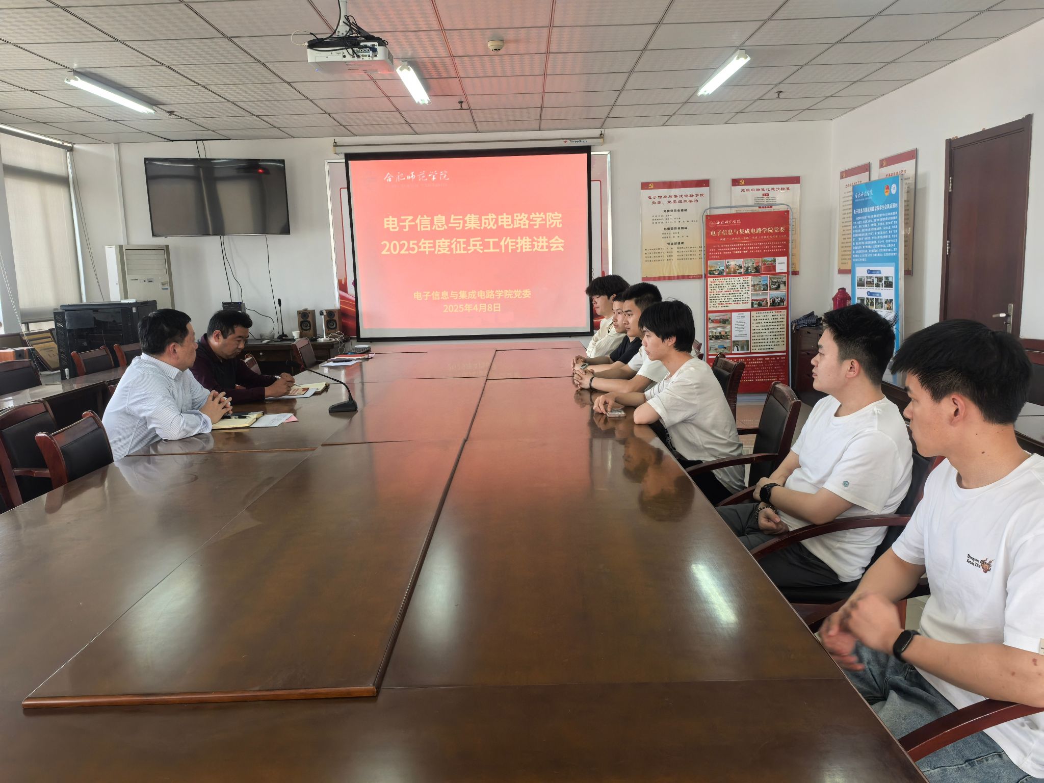 本网讯 为全面做好2025年征兵工作,4月8日下午,国产高清午夜成人lu22在行知楼1210会议室召开2025年度征兵工作推进会。国产高清午夜成人lu22党委书记王东明、学生工作(部)处、人武部徐占占、2025届毕业班辅导员及2025届参军入伍意愿学生参会。