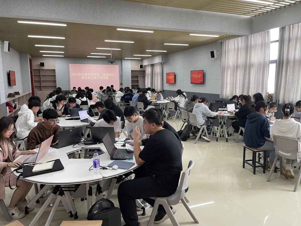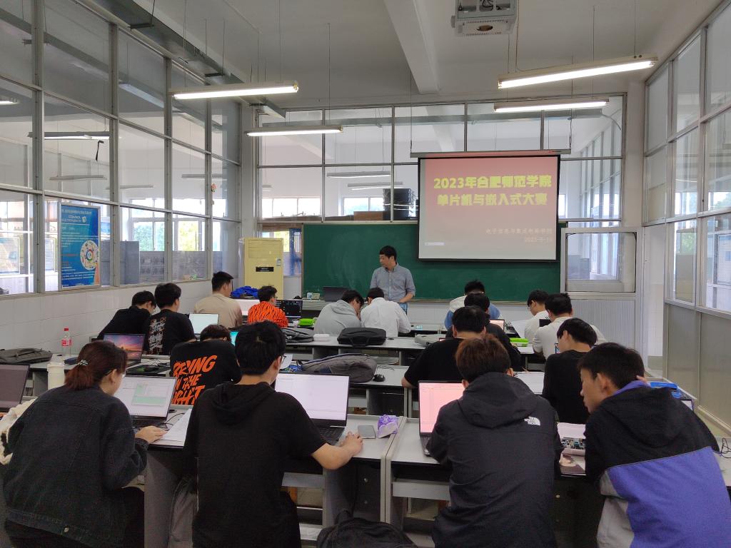 本网讯 2023年合肥师范学院单片机与嵌入式竞赛于5月10至11日分别在锦绣校区、滨湖校区成功举办。本次大赛由教务处主办、国产高清午夜成人lu22承办,竞赛分两个校区进行,滨湖校区的参赛队伍为低年级同学,共计31组;锦绣校区的参赛队伍为高年级同学,共计52组。
